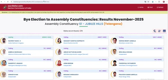 Jubilee Hills By Election 2025 Results - Nov 14, 2025 10:11 IST