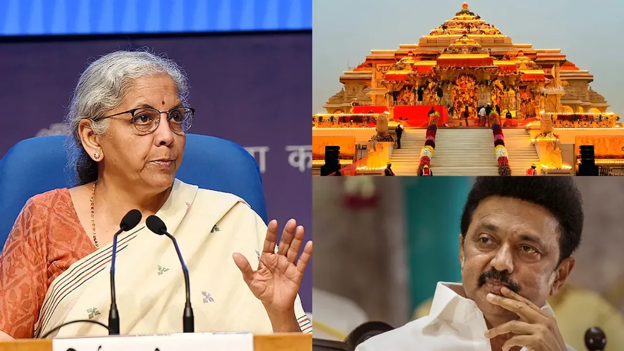Ram Mandir: రేపు (సోమవారం జనవరి 22) అయోధ్యలో రామమందిరం (Ram Temple)ప్రాణప్రతిష్ట కార్యక్రమం ఘనంగా జరగనుంది. ఈ వేడుకకు సామాన్య భక్తుల నుంచి 8వేల మంది వీఐపీల వరకు హాజరుకానున్నారు. ఈ నేపథ్యంలో అయోధ్యలో భారీ ఏర్పాట్లతోపాటు కట్టుదిట్టమైన భద్రతను ఏర్పాటు చేశారు. రామమందిరంలో ప్రాణ ప్రతిష్ట(Prana prathista)కు సంబంధించిన కార్యక్రమాన్ని దేశంలోని అన్ని దేవాలయాల్లో ప్రత్యక్ష ప్రసారం చేయనున్నారు. బీజేపీ పాలిత రాష్ట్రాలు ఈ రోజును గుర్తుండిపోయేలా చేసేందుకు ప్రత్యేక ఏర్పాట్లు చేశాయి. అదే సమయంలో, చాలా ప్రతిపక్ష పార్టీలు ఈ కార్యక్రమానికి దూరంగా ఉన్నాయి.జనవరి 22న రామ్లల్లా పట్టాభిషేకం కార్యక్రమాలను ప్రత్యక్ష ప్రసారం చేయడంపై తమిళనాడు ప్రభుత్వం నిషేధం విధించింది. స్టాలిన్ ప్రభుత్వం(Stalin's government)పై కేంద్ర ఆర్థిక మంత్రి నిర్మలా సీతారామన్(Nirmala Sitharaman) తీవ్ర ఆరోపణ చేశారు. సోషల్ మీడియా హ్యాండిల్ ద్వారా ట్వీట్ చేశారు.